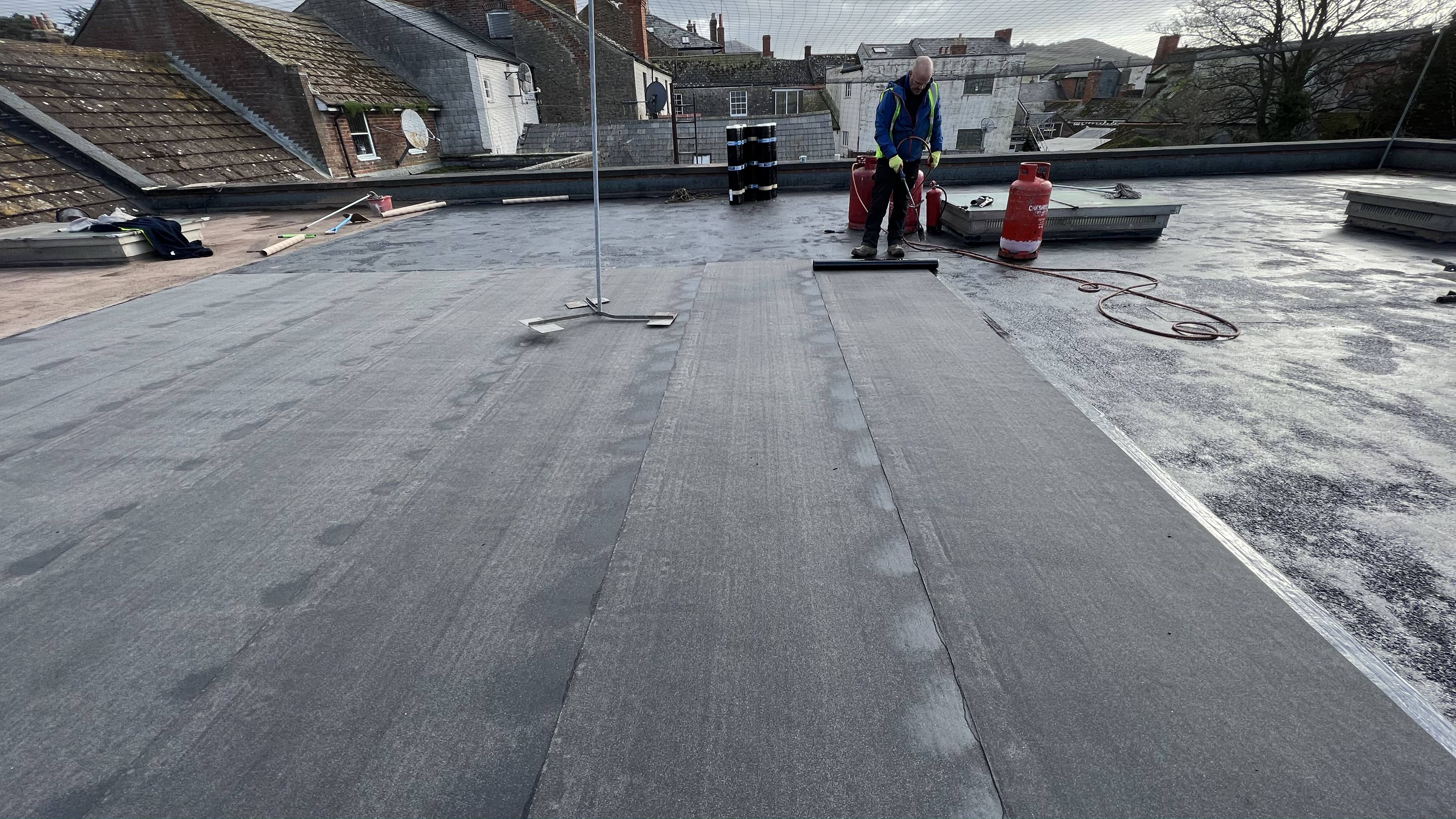 - Heating and rolling of felt and sealing overlaps.